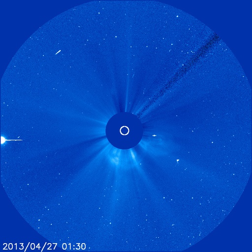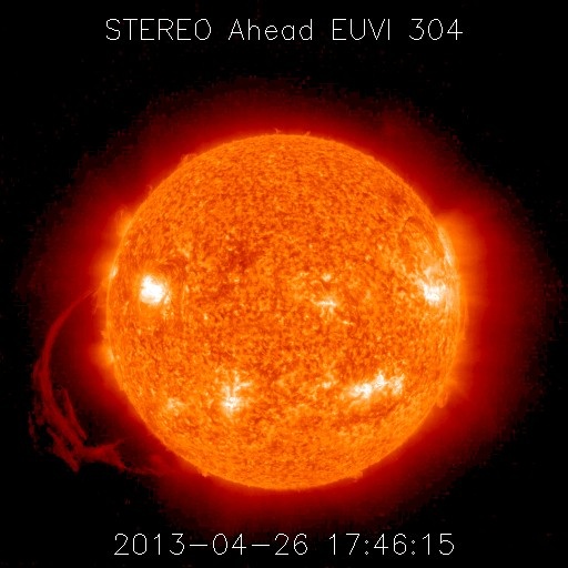2013年5月1日5時UT頃に発生した緩始型の地磁気嵐は、5月2日6時UT頃に終了しました。地磁気嵐に伴う地磁気水平成分の最大変化量は約64nTでした。この地磁気嵐の原因は、4月26日UTに発生した地球直径の70倍程度の長さのフィラメントの放出によるものと考えられます。この大規模なフィラメント放出に伴ってコロナ質量放出(CME)も観測されています。