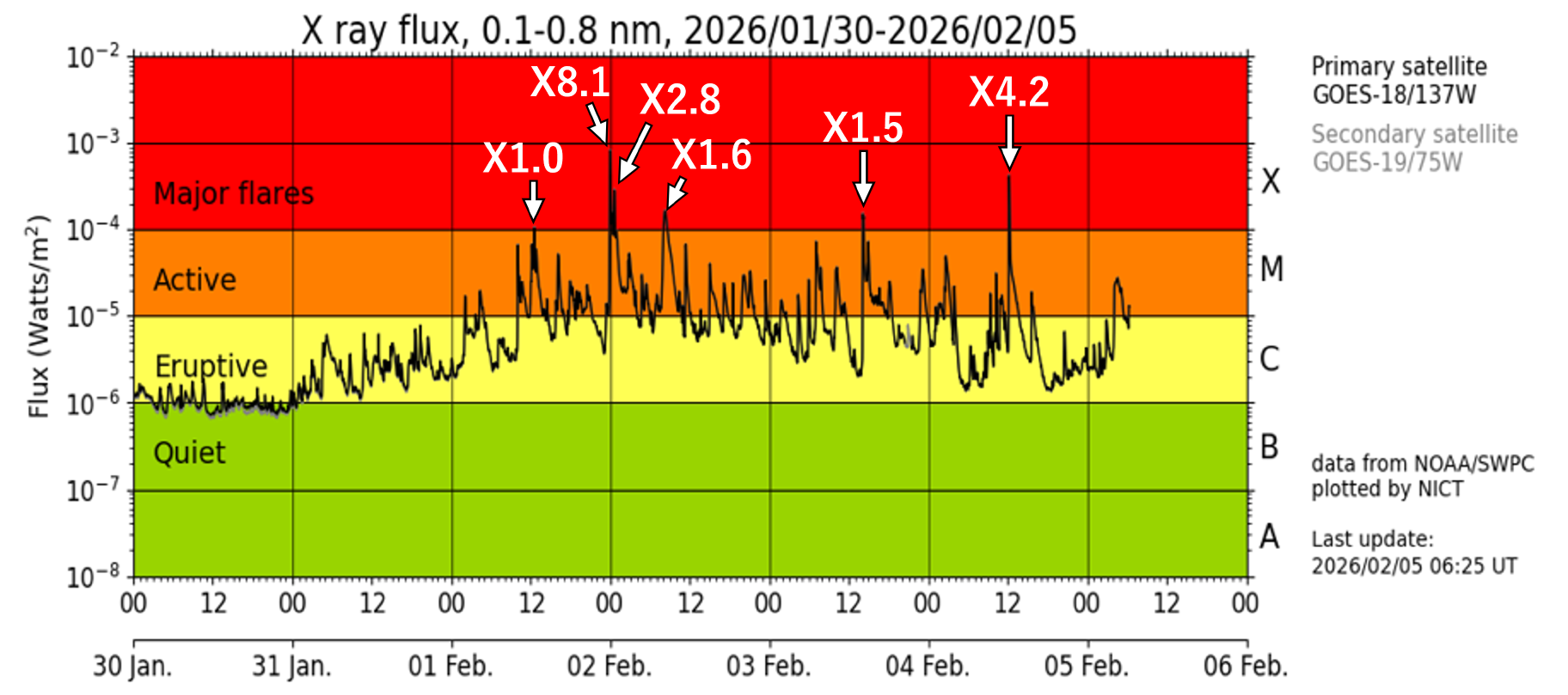 2026年2月1日~4日にかけてX8.1を含むXクラスフレアが6回発生