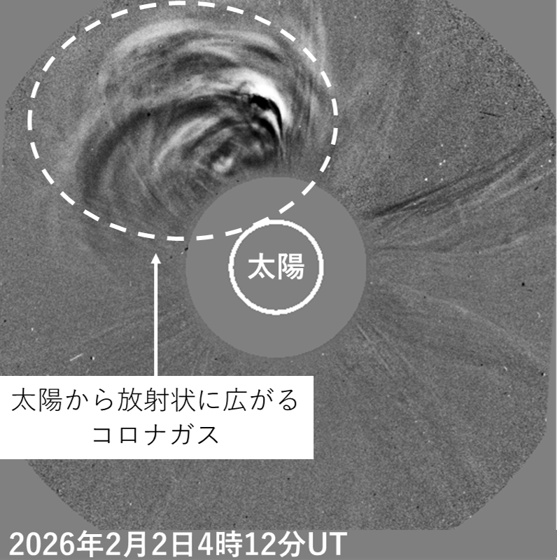 図3:探査機SOHOによる2月2日4時12分UTごろの太陽コロナ観測画像
